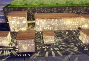 這是一組樹(shù)造型的景觀雕塑,采用不銹鋼材質(zhì)打造。雕塑形似大樹(shù),頂部鏤空且布滿燈光,夜晚亮起時(shí),如璀璨樹(shù)冠,為場(chǎng)地增添藝術(shù)與浪漫氛圍,可供人們休憩互動(dòng)。